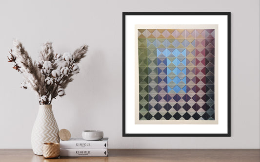 Erasmo crea obras con materiales y objetos fabricados por él mismo a través de la impresión en 3 dimensiones, con los cuales va armando distintas composiciones geométricas, con un potente efecto visual y óptico que cambian dependiendo del ángulo desde donde se observen.