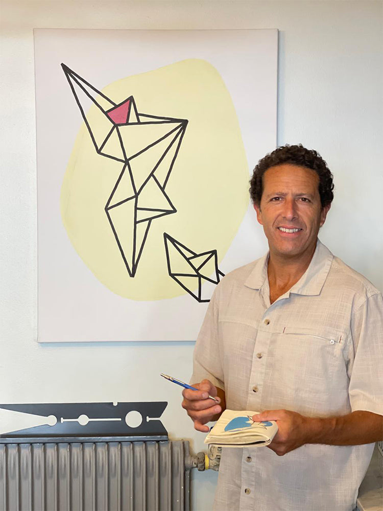 y el diseño. Su propuesta artística nace desde la observación, el croquis, el concepto y el diseño, y por otro lado, el usuario y la relación con objetos. Su obra tiene una fuerte presencia de la línea, la forma y el color.