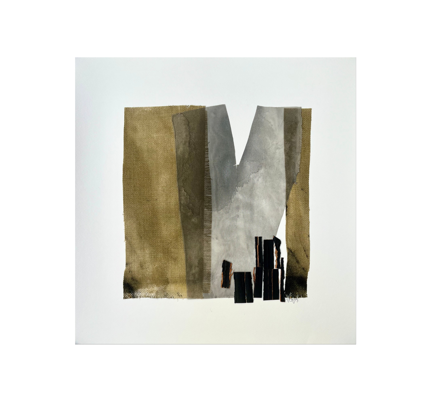 - Técnica mixta Textiles intervenidos con pigmentos y corteza de árbol, sobre papel de algodón.