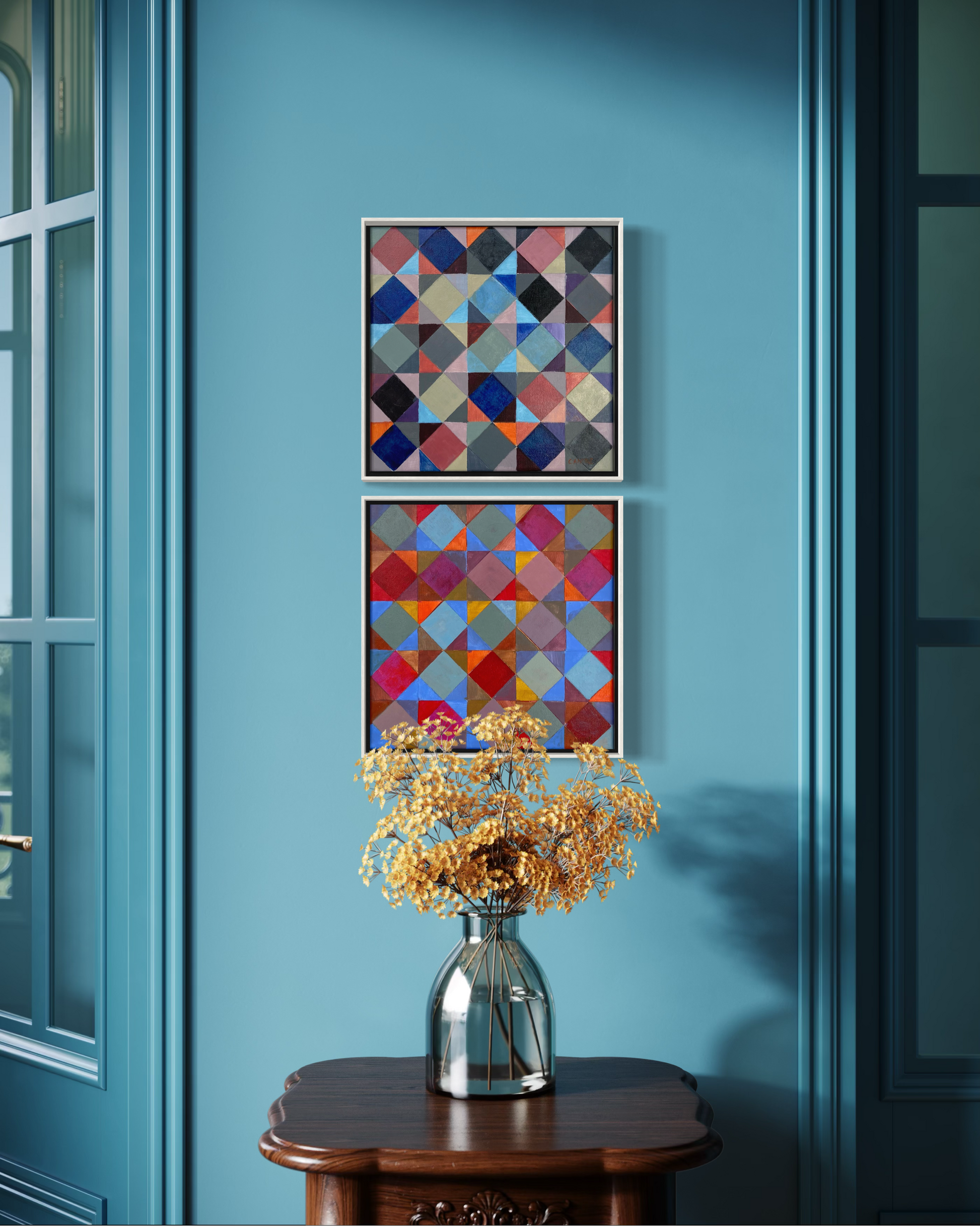 "Mi trabajo consiste en la interacción de elementos duros y elementos blandos o acuosos. El soporte de la obra es la mancha, mientras que las formas geométricas aparecen y se asoman para ser descubiertas, dando por resultado una composición con elementos dispares.