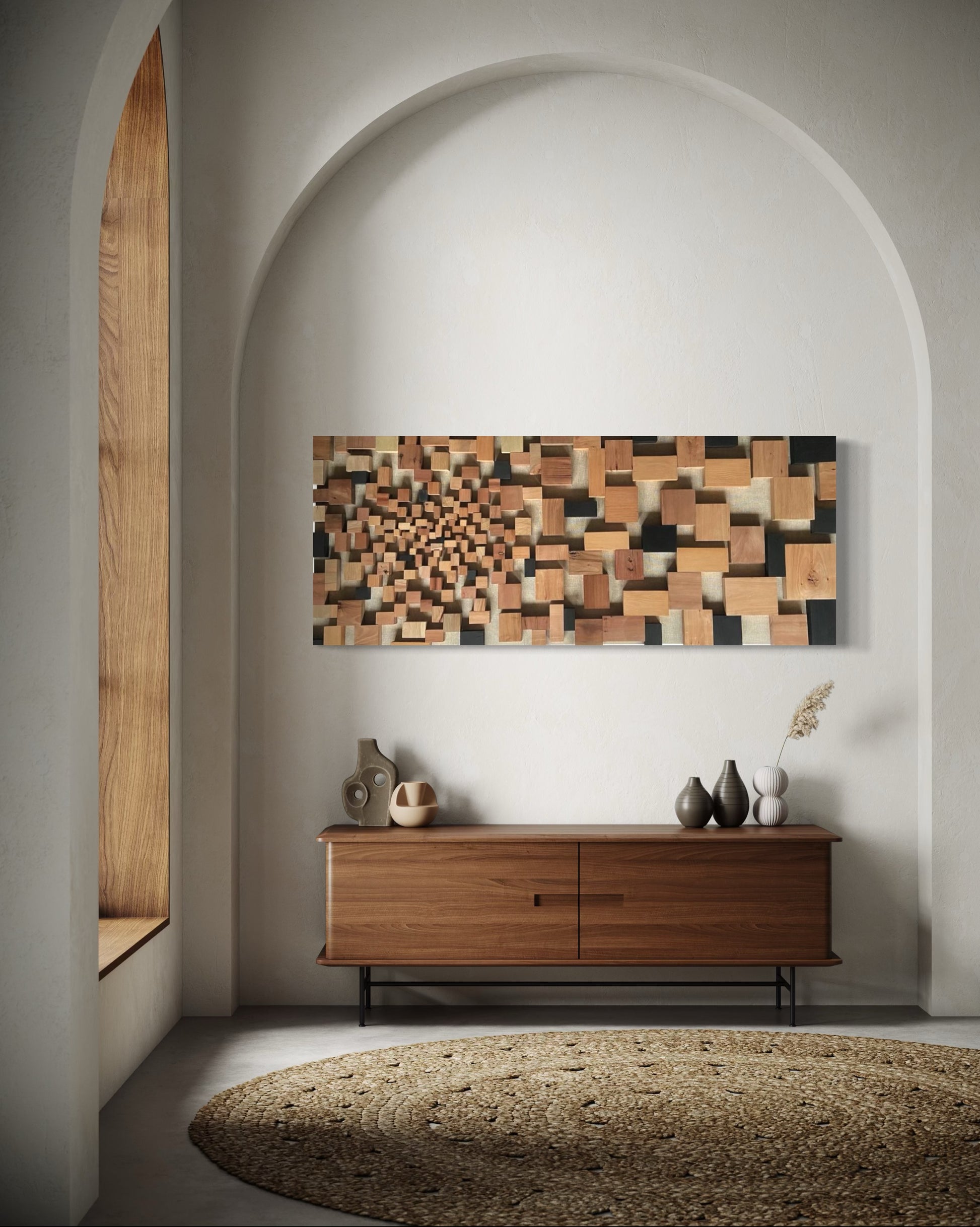 - madera nativa encontrada y tratada, con tinta, sobre lino